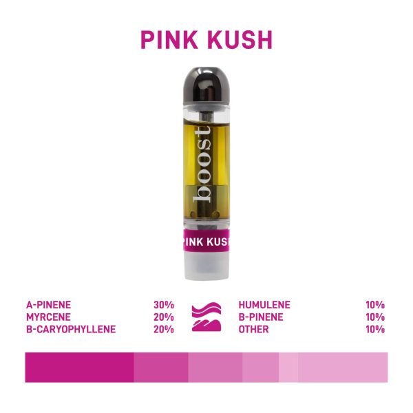 Pink Kush THC Vape Pen Cartridges are nug run distillate infused with organic naturally occurring terpenes. Each cartridge is individually lab tested for purity and terpene profiles. You can trust your vape carts from Boost!